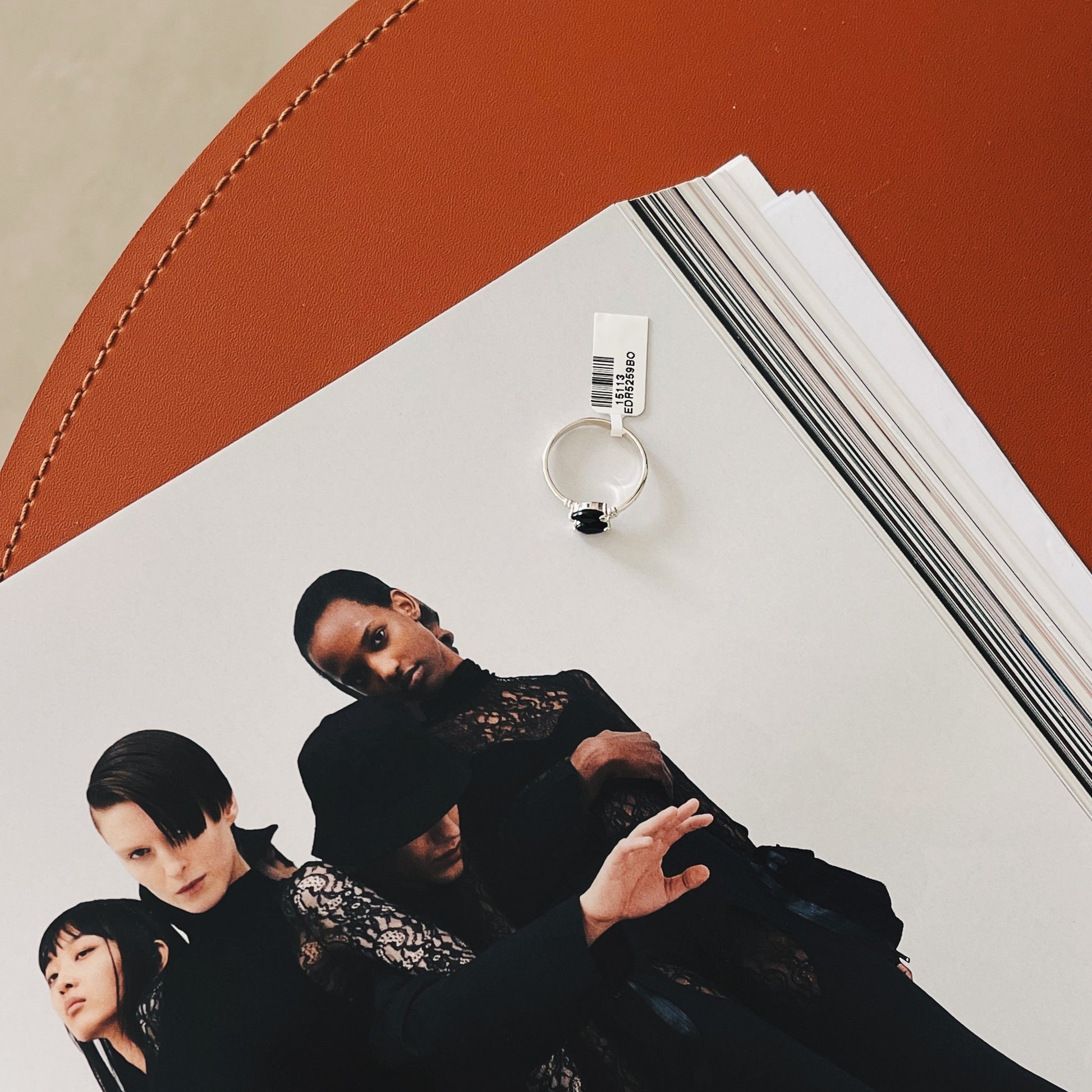 טבעת עדינה מכסף 925 עם שתי אבני אוניקס קטנות שמוסיפות קונטרסט אלגנטי ונוכחות עדינה.
