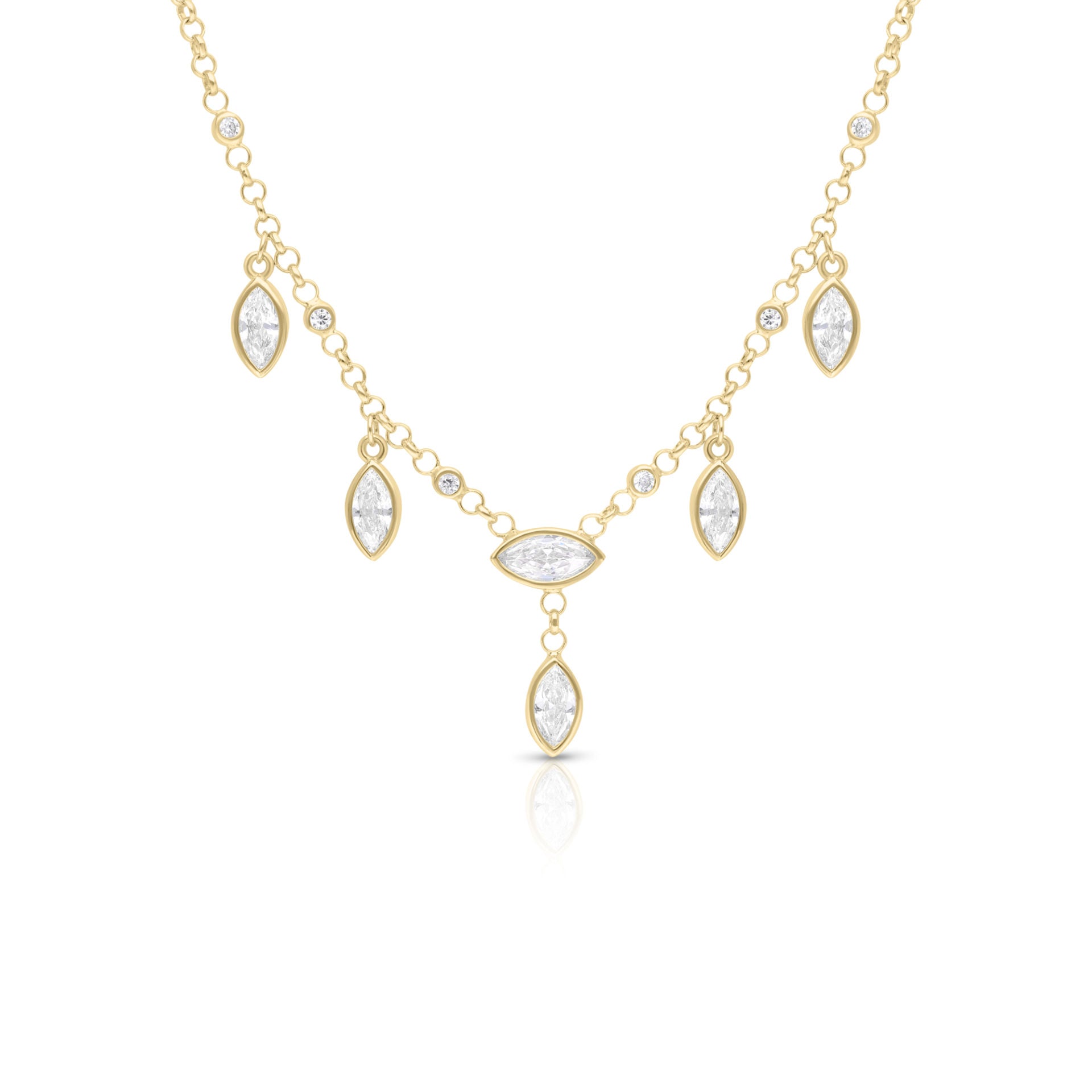 שרשרת דקה ונשית, עם זרקונים בחיתוך מרקיזה שנופלים על הצוואר בצורה מושלמת!