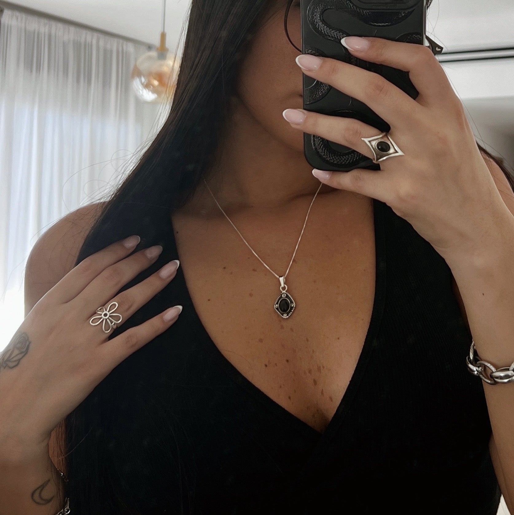 השרשרת עשויה מכסף 925, מעט מושחרת. מיוצרת בעבודת יד מלאי מוגבל – כל פריט ייחודי