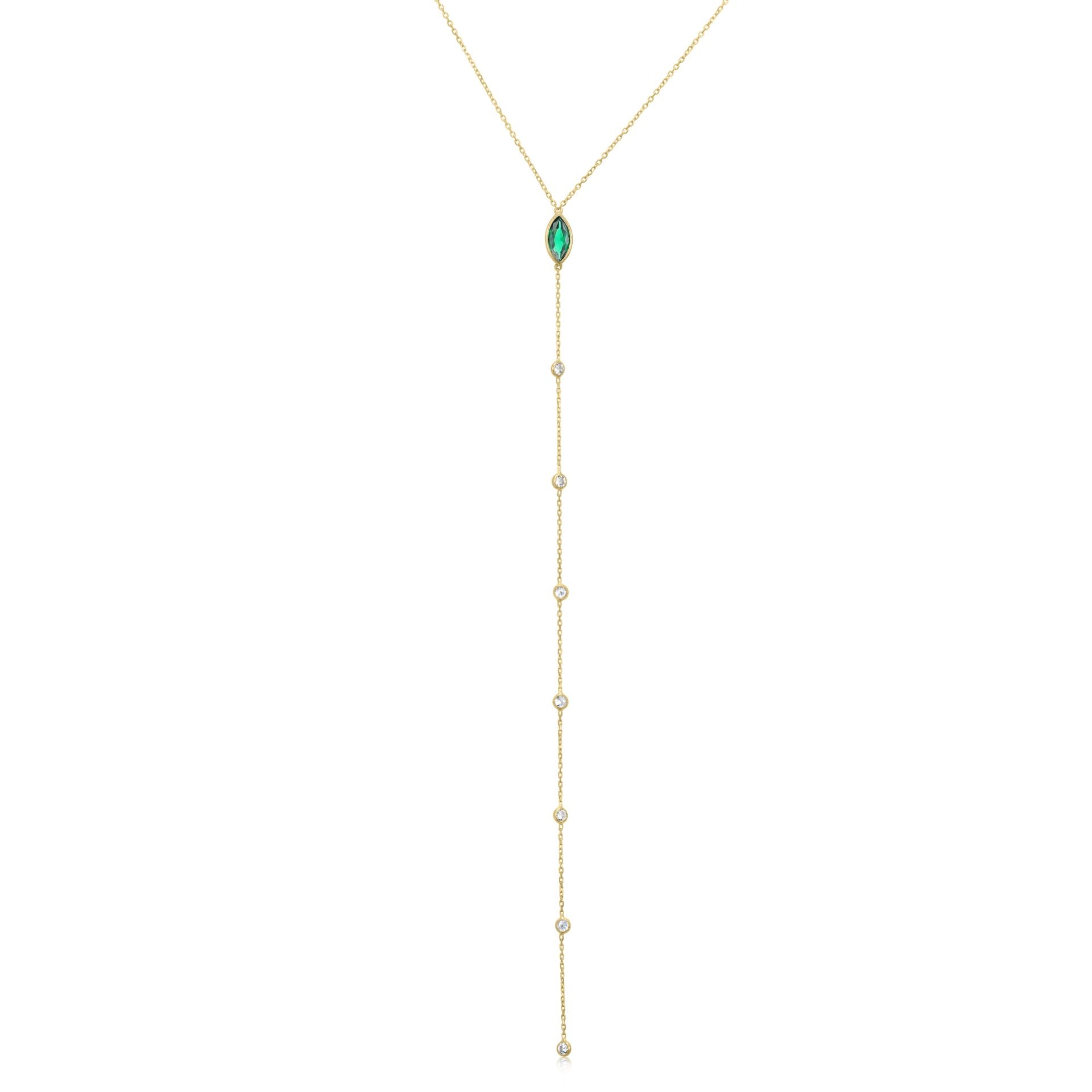 עשויה מכסף 925 בציפוי זהב 14 קראט, עם זרקונים משובצים לאורך השרשרת וזרקון מרכזי בחיתוך מרקיזה – שילוב מדויק של נוכחות עדינה ונצנוץ אלגנטי.