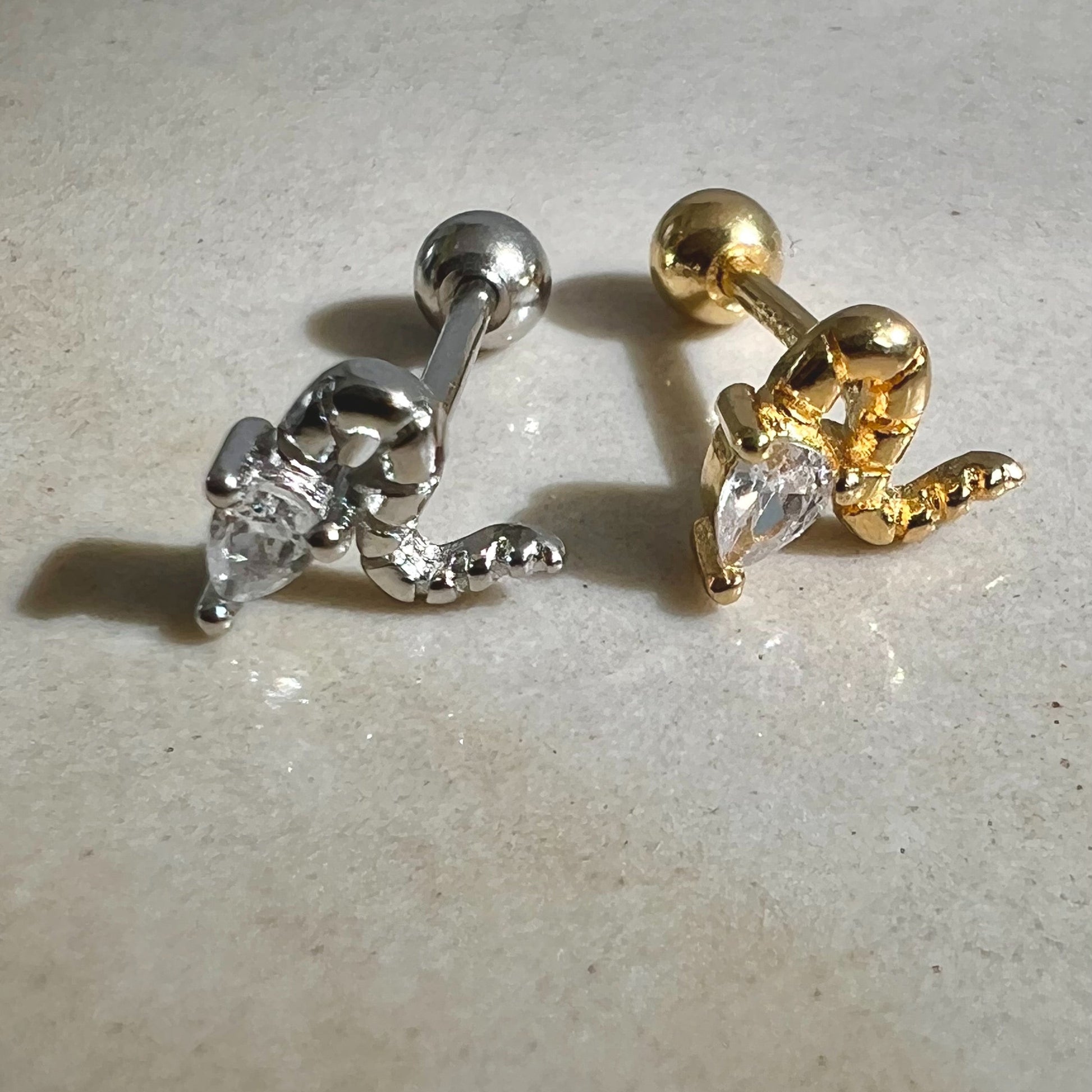עגיל צמוד בצורת נחש משובץ באבן זרקון, מתאים לכל החורים באוזן, מיוחד ואיכותי.