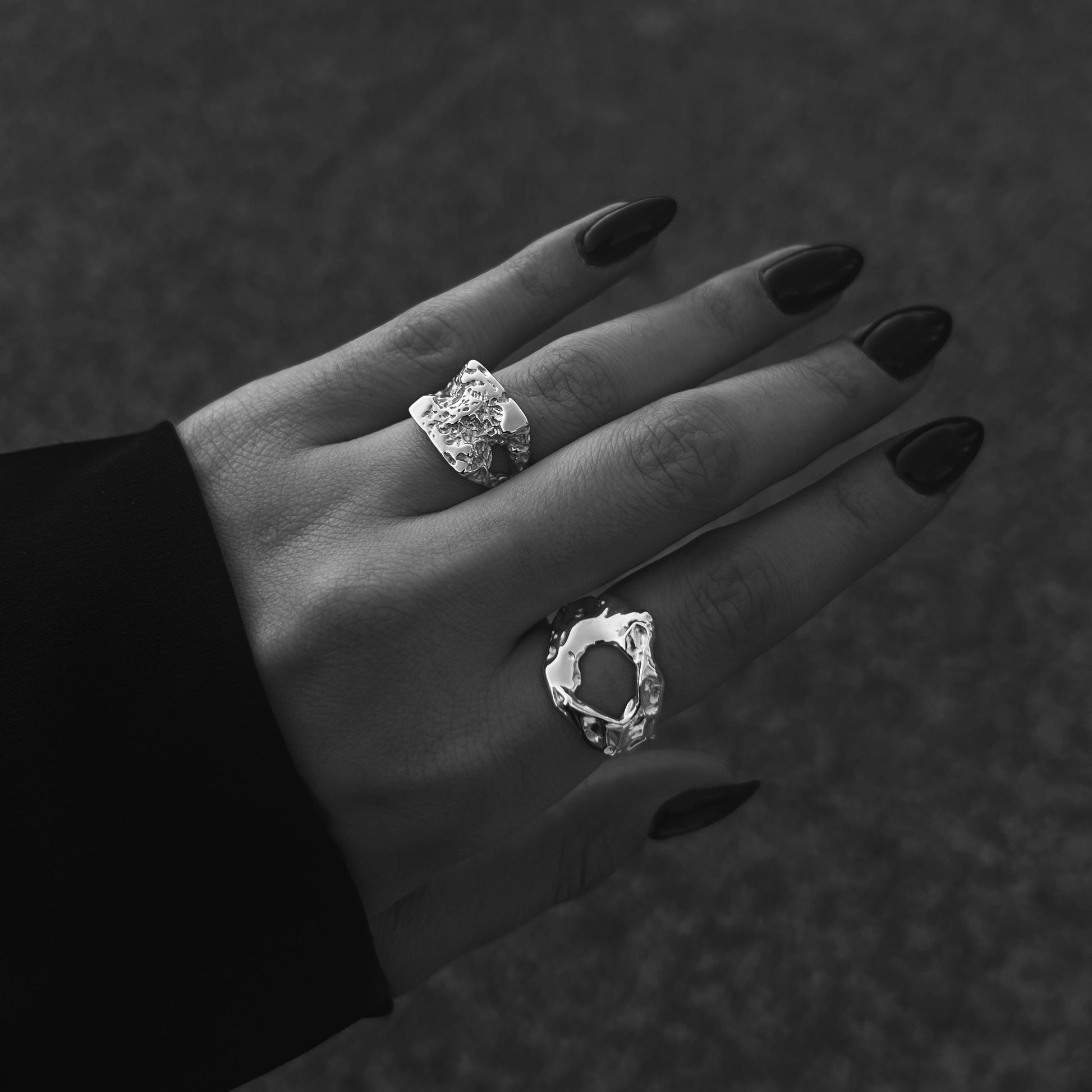טבעת עם טקסטורה גולמית.